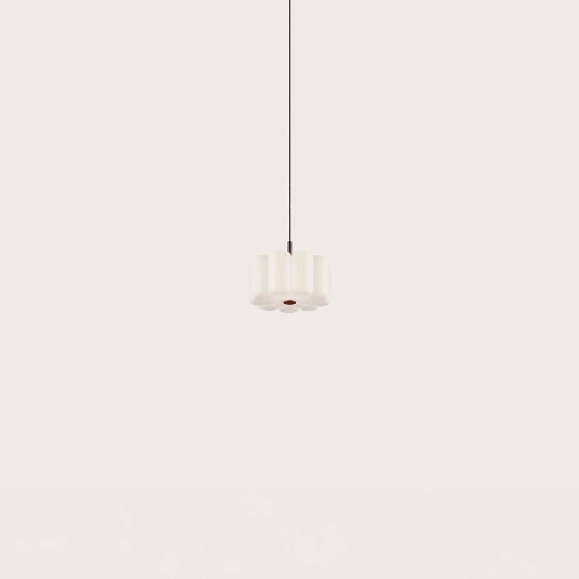 Die Flow der spanischen Marke Aromas del Campo ist eine elegante Kombination aus dekorativem Design und Funktionalität. Ihr Hauptmerkmal ist ein Glasdiffusor in Form einer Blume, der das Licht sanft streut und eine angenehme Atmosphäre schafft. Die Leuchte mit Metallsockel ist an einem eleganten Kabel aufgehängt, wodurch sie leicht und luftig wirkt. Sie verfügt über ein integriertes 9 W LED mit einem Lichtstrom von 900 lm, einer Lichttemperatur von 2700K und der Möglichkeit, mit einem TRIAC-Dimmer zu dimmen.