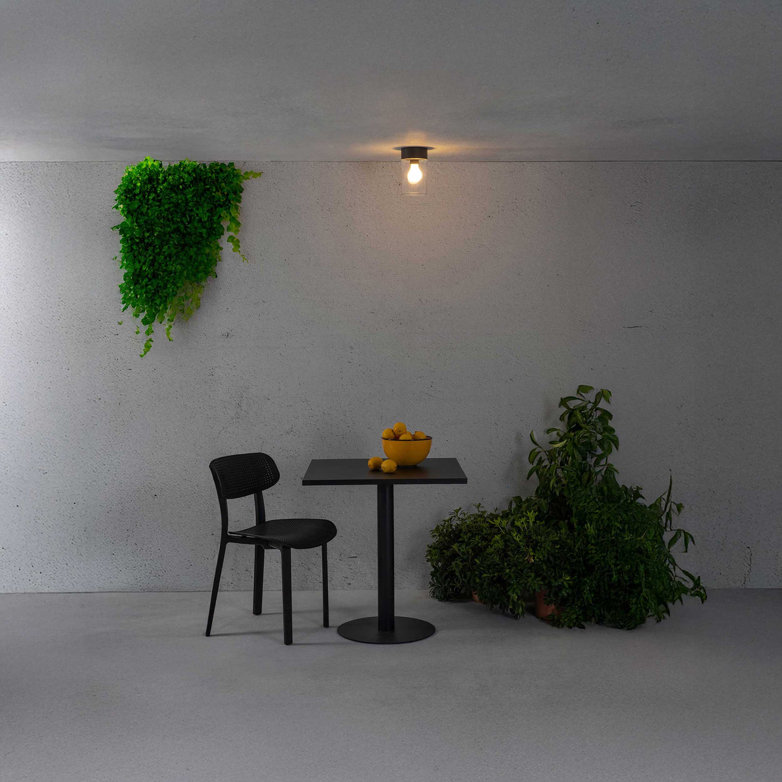 Die Kila der spanischen Marke Faro Barcelona ist eine elegante und zeitlose Lösung für die Beleuchtung von Eingängen, Veranden, Pergolen und Terrassen. Die Kombination aus einer Aluminiumstruktur und einem halbtransparenten Glasdiffusor schafft einen visuell sauberen Kontrast zwischen der massiven grauen Struktur und dem sanft gestreuten Licht. Das Design lässt auch das Leuchtmittel selbst hervorstechen und wird so zu einem natürlichen Teil des Designs.