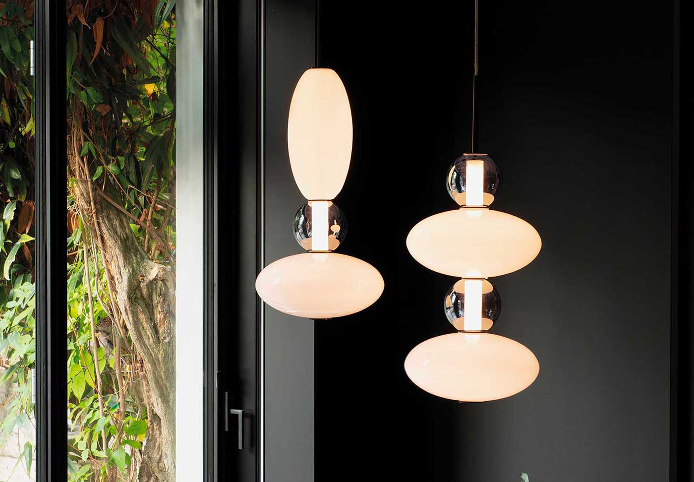 Der matt lackierte Sockel und die Magnetverschluss-Rosette sorgen für eine einfache Installation. Das transparente PVC-Kabel verleiht der Leuchte Leichtigkeit und Minimalismus, wodurch sie sich für eine Vielzahl von Innenräumen eignet. Der zentrale Diffusor in Weiß im Inneren der Glaskugeln sorgt für eine gleichmäßige Lichtstreuung und schafft eine angenehme Atmosphäre im Raum. Die Dekorelemente aus glänzend weißem und transparent grauem mundgeblasenem Glas verleihen der Lumiere Leuchte Eleganz und ein einzigartiges Designelement.