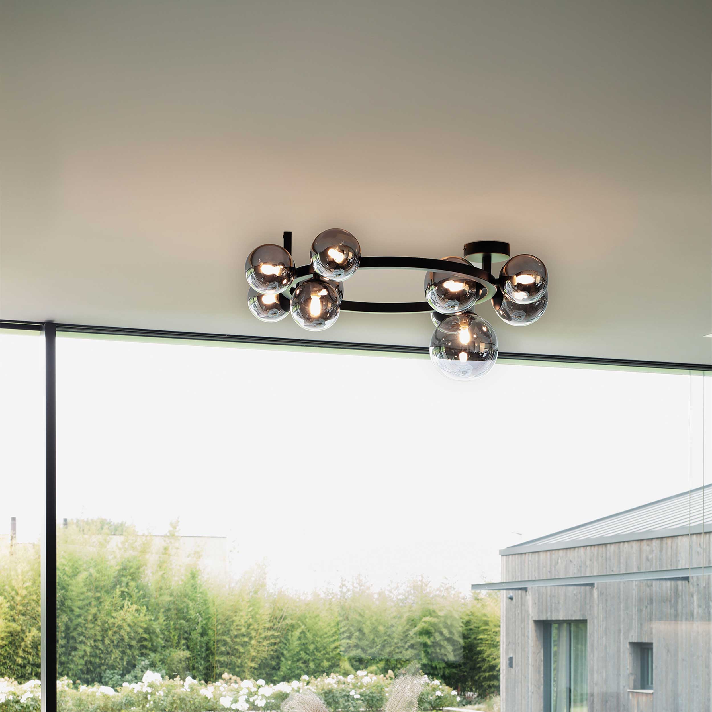 Die Perlage des renommierten italienischen Herstellers Ideal Lux ist eine elegante Kombination aus modernem Design und präziser Verarbeitung. Die runde Metallstruktur, die durch Diffusoren aus mundgeblasenem Glas ergänzt wird, sorgt für eine sanfte und gleichmäßige Lichtstreuung und verleiht der Leuchte gleichzeitig einen unverwechselbaren dekorativen Charakter.