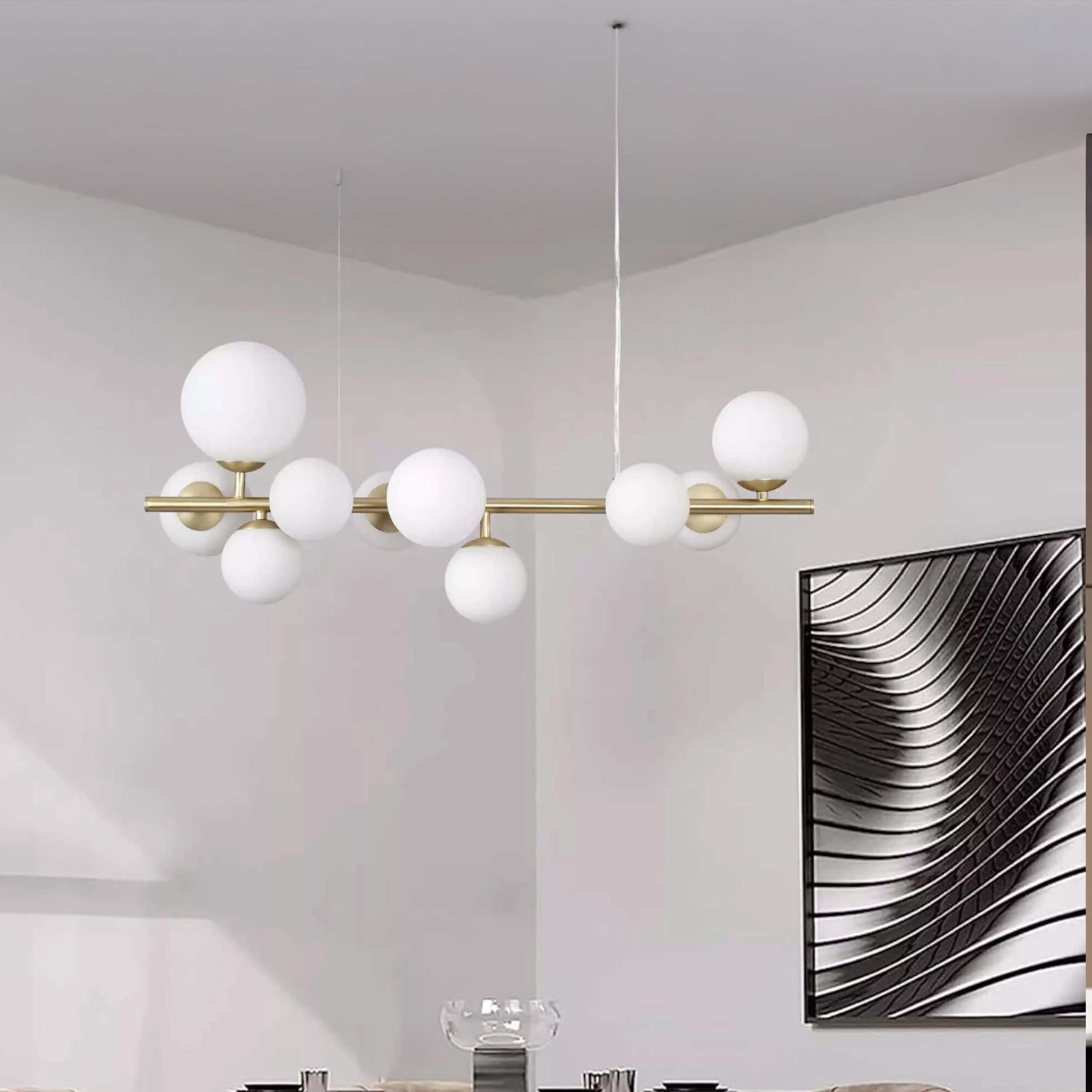 Die Perlage des italienischen Herstellers Ideal Lux im linearen Design ist eine elegante Kombination aus modernem Design und präziser Verarbeitung. Die Metallkonstruktion sorgt für Stabilität und optische Leichtigkeit, während die mundgeblasenen Glasdiffusoren für eine weiche und gleichmäßige Lichtstreuung sorgen, die eine angenehme Atmosphäre im Innenraum schafft. Die lineare Form der eignet sich besonders gut für die Beleuchtung von Esstischen, Kücheninseln oder repräsentativen Räumen. Das Aufhängesystem aus Stahlseilen mit Gummioberfläche ermöglicht eine einfache Höhenanpassung an die Raumaufteilung. Die Leuchte verwendet Leuchtmittel mit einer G9-Fassung, die eine flexible Auswahl der Intensität und des Charakters des Lichts ermöglichen.